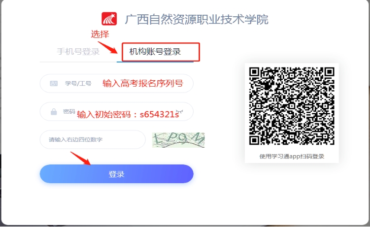登录账号:学号/工号即考生高考报名序列号,初始密码即s654321s