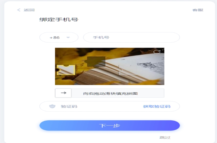 第三步:绑定手机号(此步骤可选择跳过)