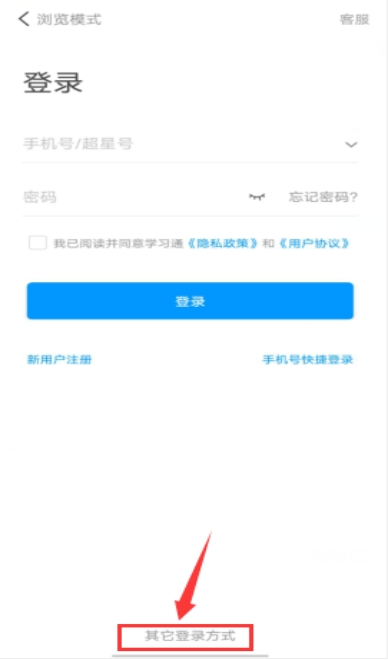 第二步:打开学习通,选择-其他登录方式