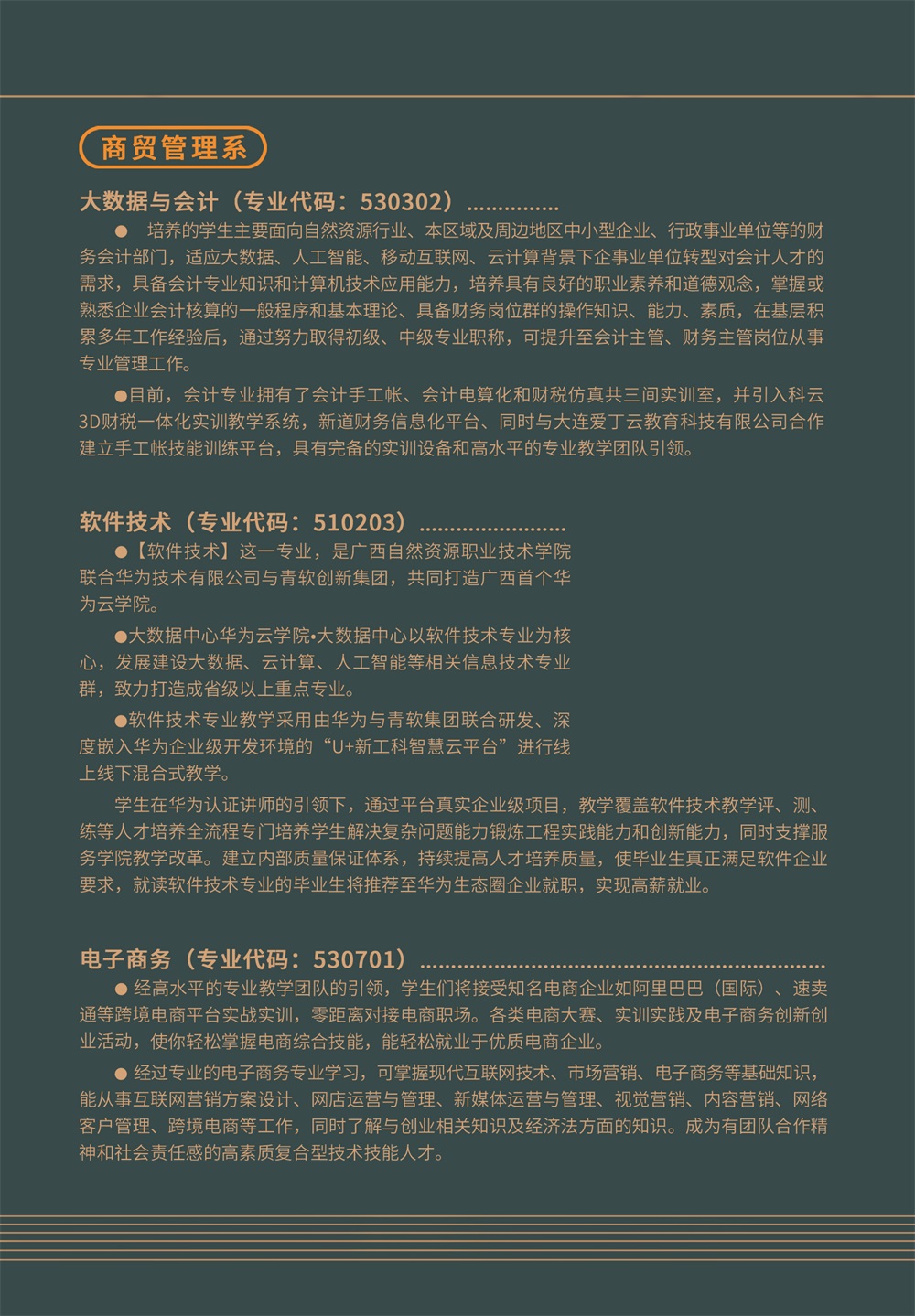 学院秉承“立德树人、求实创新”的校训,坚持“以服务为宗旨,就业为导向,走产学研结合发展道路”的办学方针,立足广西,面向东盟,服务“一带一路”,以培养生产、建设、管理、服务第一线所需的高素质应用型人才为目标,打造具有自然资源特色、南国边关特色、民族区域特色的高素质技术技能人才培养高地和创新服务平台,培养新时代中国特色社会主义事业合格建设者和可靠接班人。